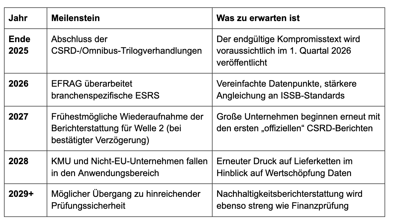 Nutze diese regulatorische Pause als Phase des Systemaufbaus. Die Unternehmen, die jetzt vorangehen, werden später deutlich besser vorbereitet sein, wenn die Berichtspflichten wieder einsetzen.